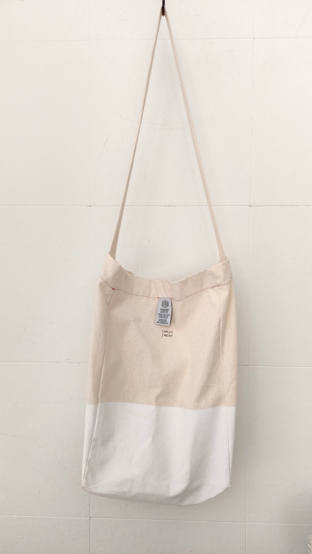 コットンのボディにホワイトプリントのボトムをあわせたシンプルでスタイリッシュなショルダーバッグです。マチが広いため、大容量を実現しており、デイリー使いやお出かけにとても便利です。軽量で持ち運びもラクラク、カジュアルスタイルにぴったりのアイテムです。