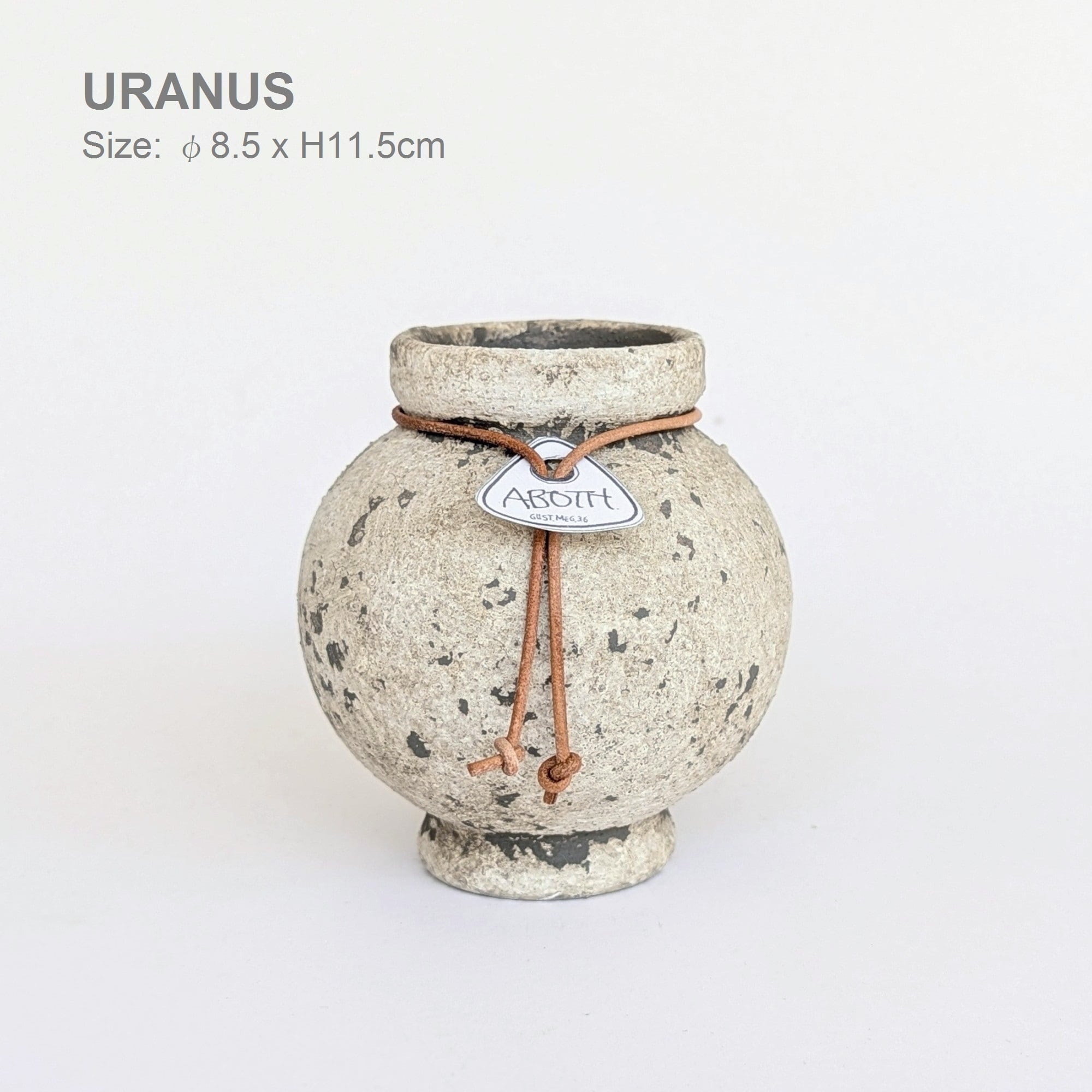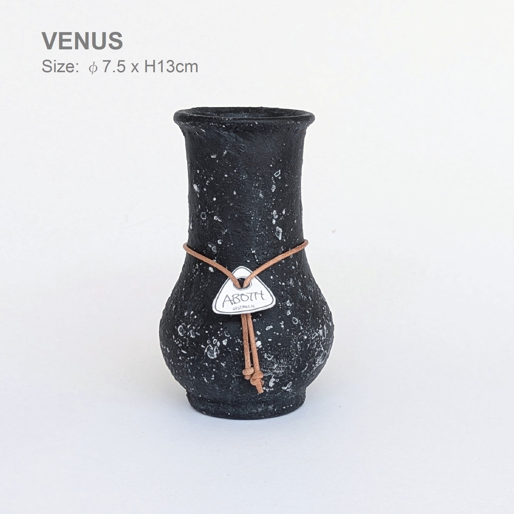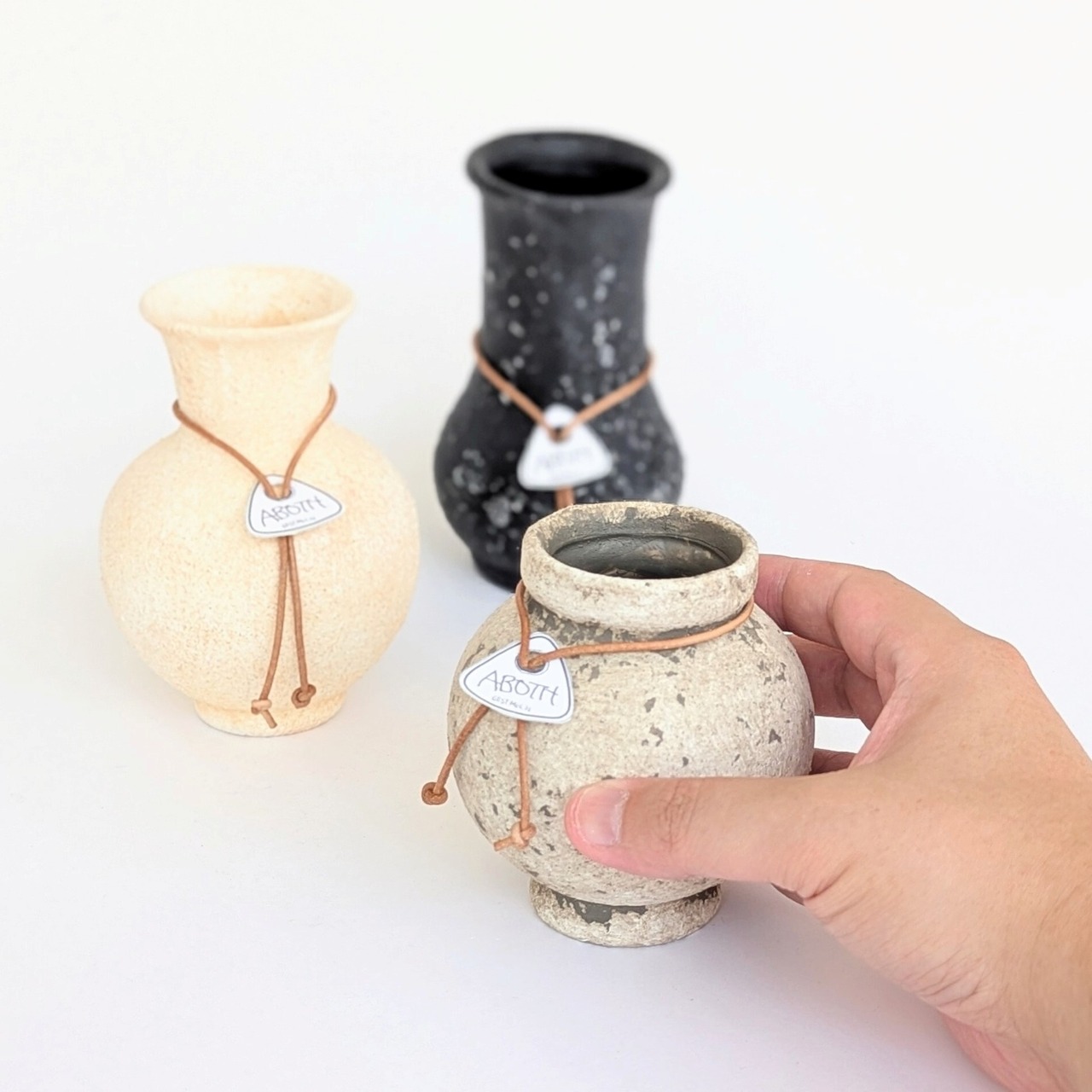 セラミック素材のベースに、焼き付けではなくハンドペイントで加工を施した雰囲気のあるフラワーベースです。