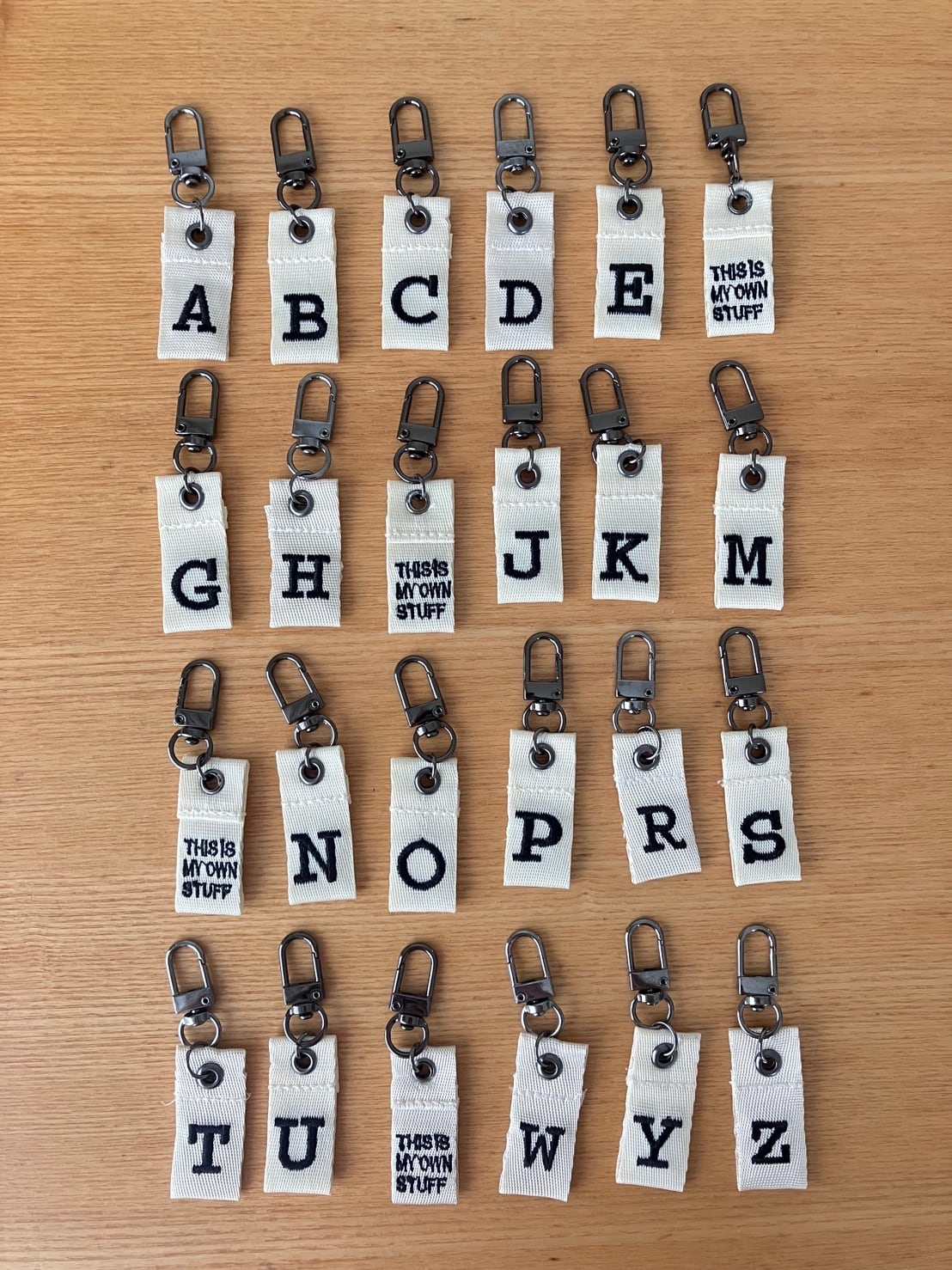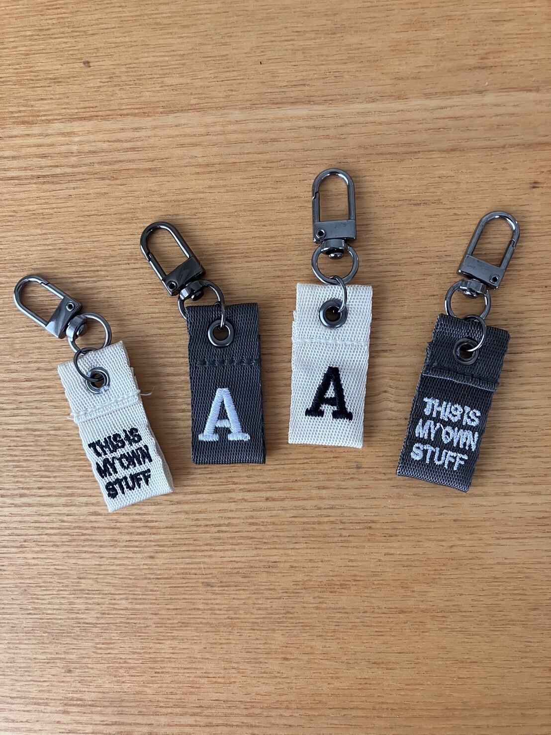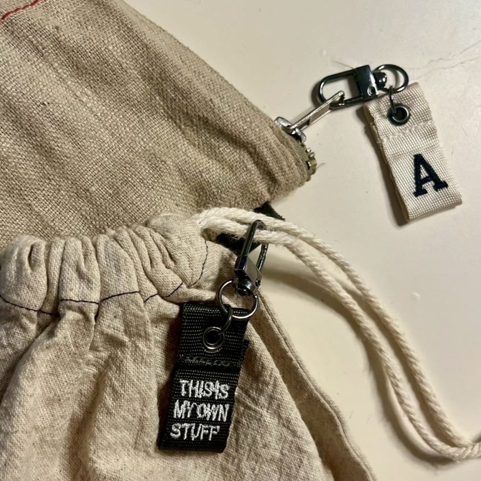 ”THIS IS MY OWN STUFF”(=これはわたしのものです)の刺繍が施されており