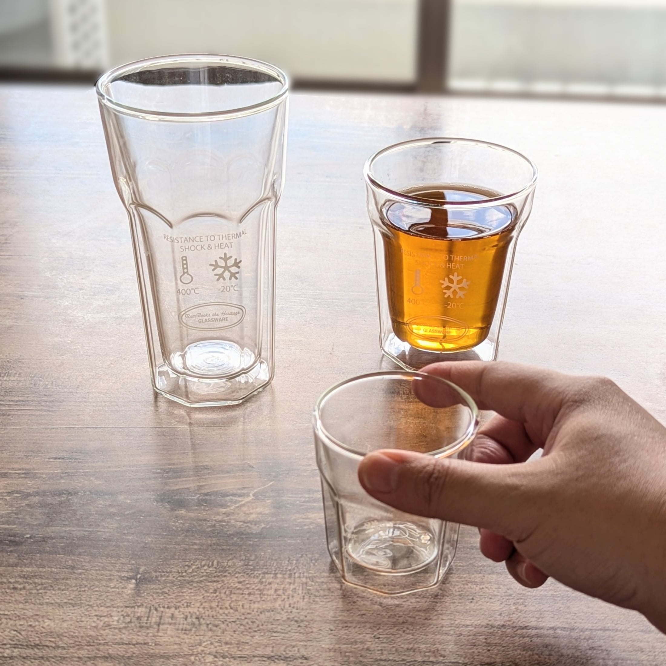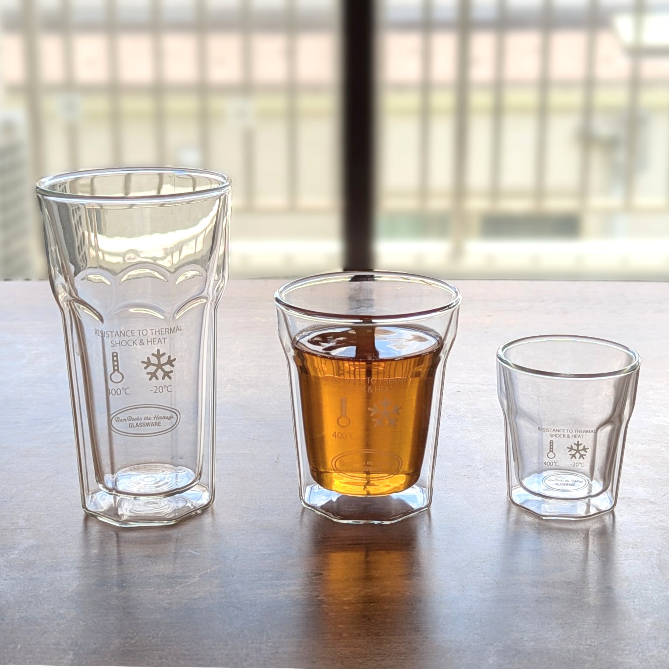DOUBLE WALL OCTAGONAL TUMBLER 280ml 耐熱ガラス・タンブラーMサイズ