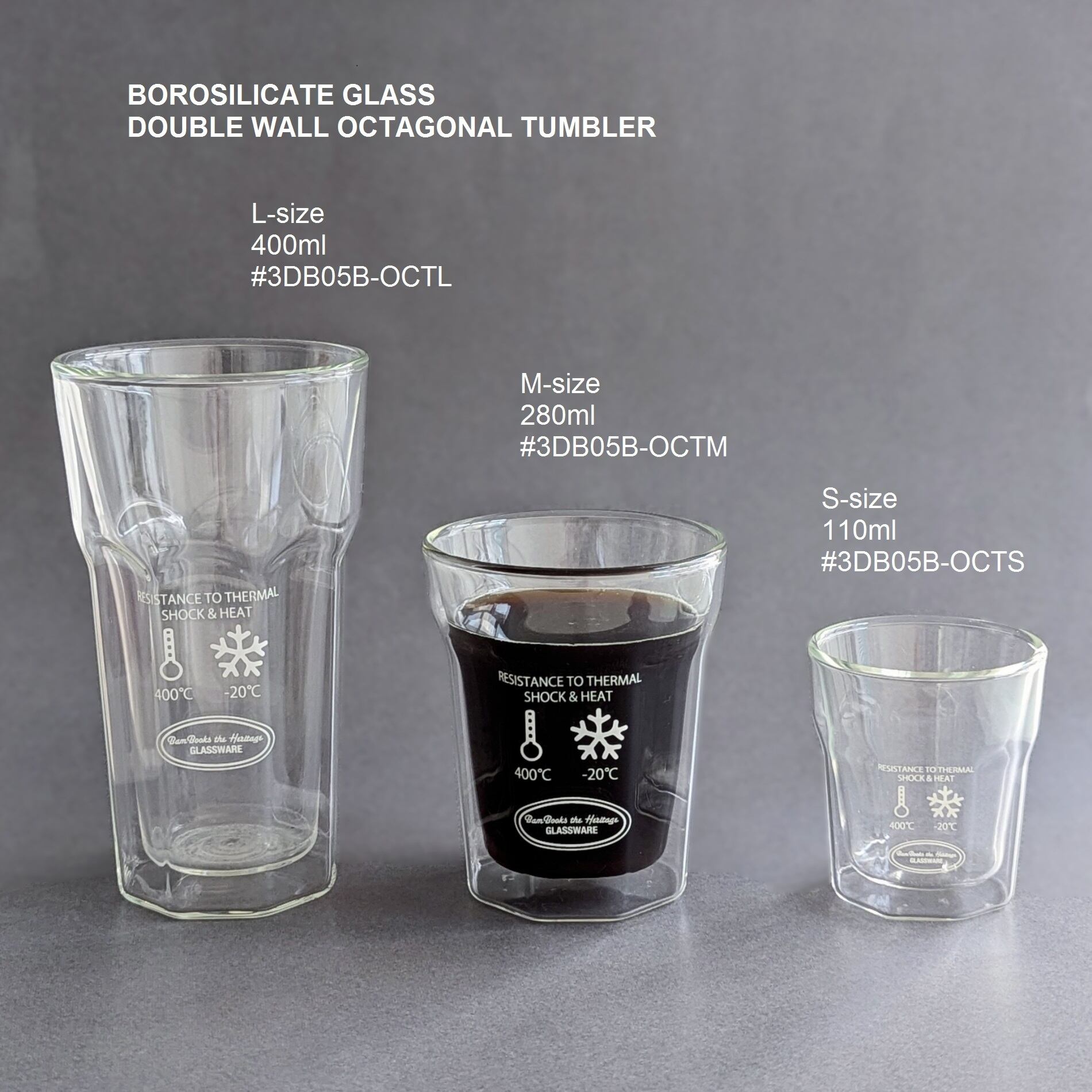 DOUBLE WALL OCTAGONAL TUMBLER 400ml 耐熱ガラス・タンブラーLサイズ