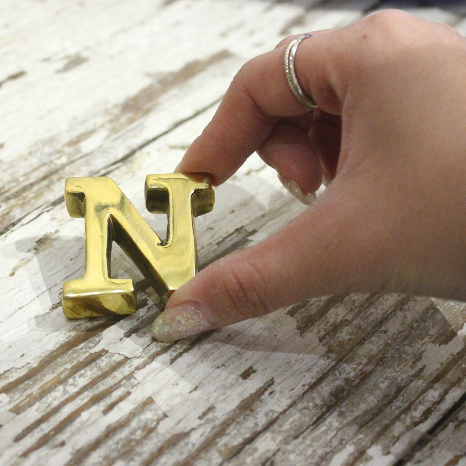 オリジナルの真鍮製イニシャルペーパーウェイト。